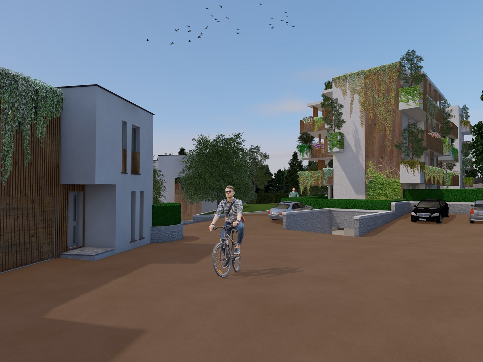 green building residential complex consisting of 19 single-family villas and 14 apartments
